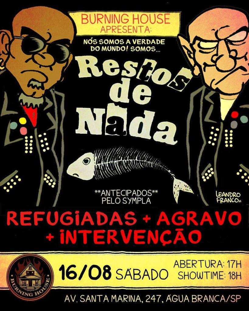 No sábado, 16 de agosto, a casa de show Burning House (@burninghousesp), em São Paulo, será palco de uma celebração histórica do punk rock nacional, reunindo quatro nomes que representam diferentes gerações e vertentes do gênero: Restos de NadaRefugiadasAgravo e Intervenção.