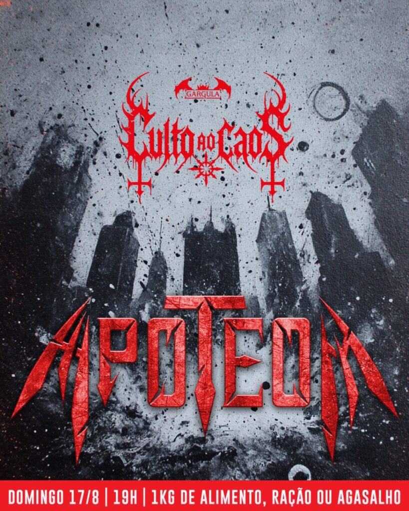 A banda gaúcha APOTEOM, formada em 2010 em Santa Maria/RS, está passando por um momento renovação visual e criativa. O grupo está divulgando oficialmente seu novo logotipo, ao mesmo tempo em que se prepara para um show especial neste domingo, 17 de agosto, no “Culto ao Caos”, que acontece no Gárgula Bar, em Santa Maria. O evento terá início às 19h e a entrada é 1 Kg de alimento, ração ou agasalho.