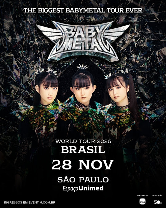 Começam a ser vendidos a partir de hoje (22), às 10h, no site da Eventim (acesse aqui), os ingressos para o show do BABYMETAL, que está marcado para o dia 28 de novembro, no Espaço Unimed (SP), em uma realização da 30e, maior companhia brasileira de entretenimento ao vivo. O trio de garotas japonesas pode enganar quem não conhece a sonoridade da banda, mas quando o BABYMETAL sobe ao palco, a fofura inicial dá lugar a uma tempestade sonora. Agora, elas retornam ao país após uma estreia marcante por aqui — em 2024, tocaram no Knotfest Brasil e em uma noite esgotada na Audio — e com sua maior turnê até o momento. O show tem o Itaú Unibanco como banco oficial por meio do Itaú Live, plataforma proprietária de música.
