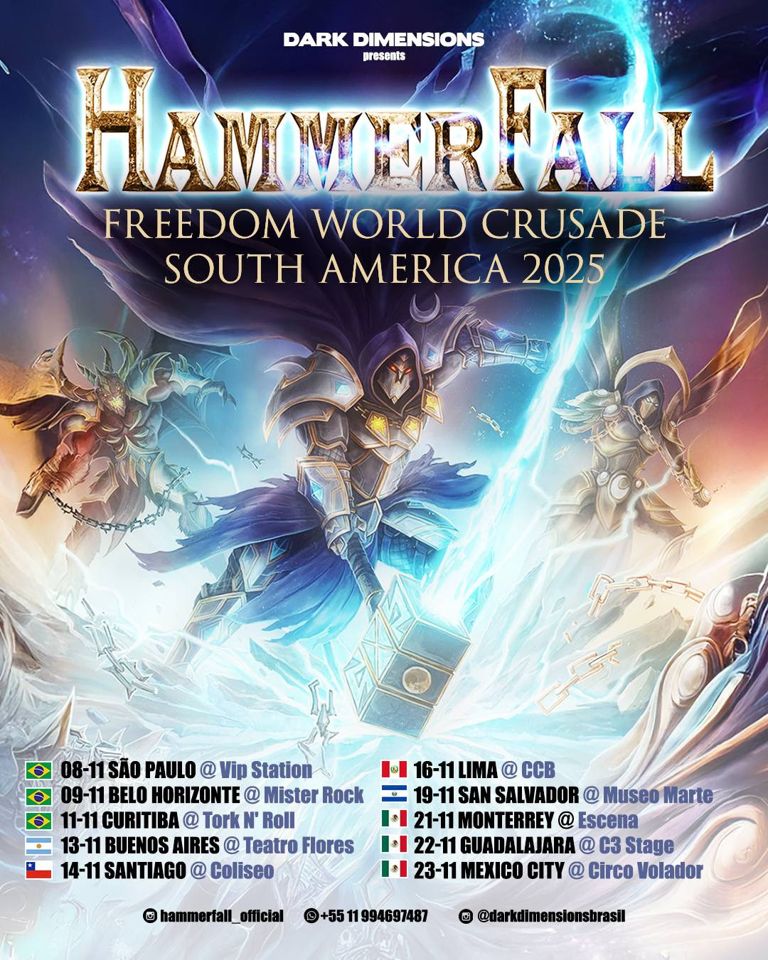 via JZ Press A produtora Dark Dimensions confirma o retorno do lendário HammerFall à América Latina com a turnê Freedom World Crusade South America 2025, trazendo toda a força épica e melódica que consagrou a